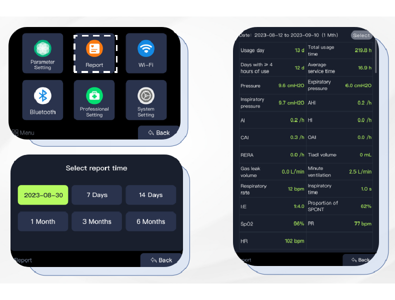 - * توصيل مقياس التأكسج نبض Lepu للحصول على مراقبة فورية ومستمرة لـ SPO2 طوال الليل
